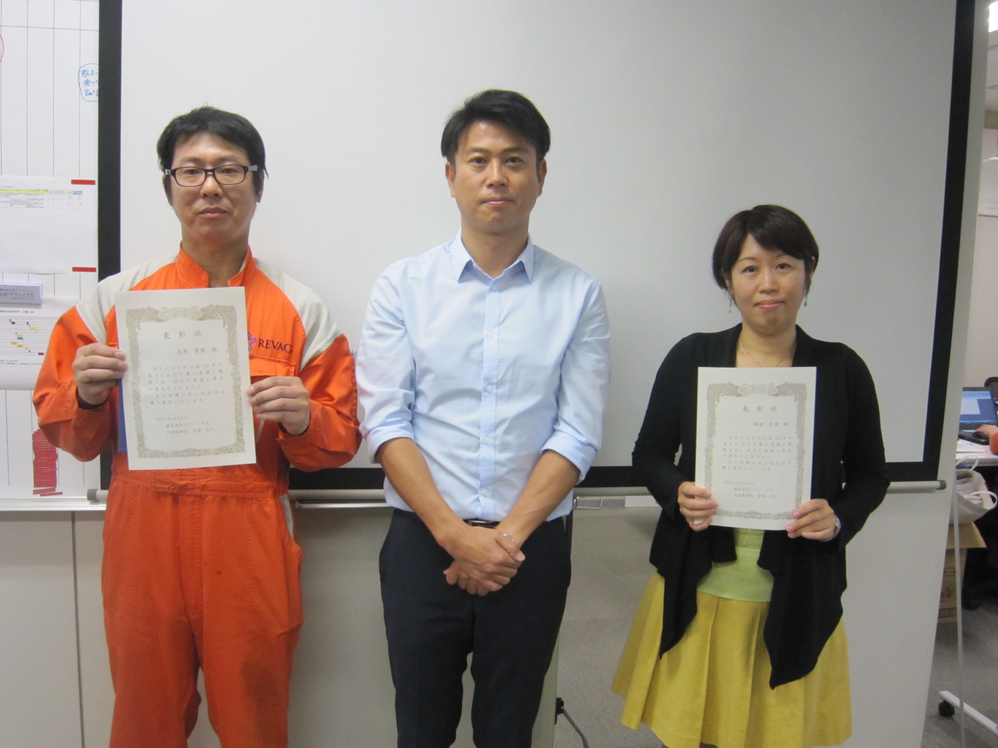 2016年度は、勤続10年社員1名、勤続20年社員9名、計10名を表彰しました。